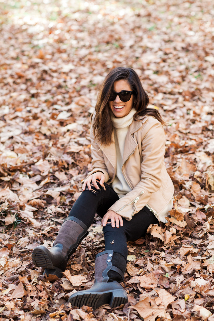 Granted, when I partnered up with EMU Australia to showcase their new waterproof boot line (which I'm looking forward to putting to the test come this winter!), I knew I wanted to hop over to my favorite park and finally play in the fresh fall leaves. For about the first 20 minutes of this shoot, I was pretty alone, as passerby stared a bit funny at this girl throwing around leaves and laughing at herself in the process. But you know what? Eventually, one by one, a few other folks joined into piles and tossed them around, snapping photos along the way, until before long, you could scan the park and see different patches of folks playing, leaves gently falling down around them. And for about 15 minutes or so, we all felt like kids again.
