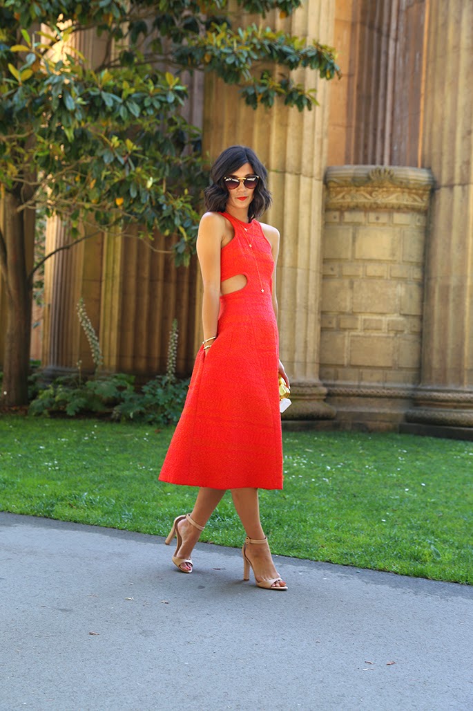 I forgot just how much I loved this dress.  The color. The flare. The cutouts. And the excuse it gives me to tote around this perfume bottle clutch, that I'm absolutely obsessed with. Admittedly, I had this dress on heavy rotation last summer for our circuit of weddings and baby showers but I think it may make a few repeat performances this summer, including a certain high school reunion coming up.