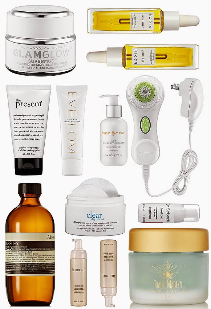 My skin has always been oily prone, but it wasn't until I moved from a really dry, hot climate (Nevada) to a more damp and cool environment (hello, SF!), that I saw a dramatic difference in how sensitive my skin really can be. These days, I've set a few mini obtainable goals for my skin routine with a short shopping list to try out (including a few of the products shown above). Let's kick things off here shall we?